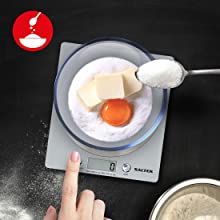 Lauren"The Salter Digital Kitchen Weighing Scales are The UK's bestselling kitchen scales - compact and sleek, they're the ultimate kitchen accessory for food prep. The electronic platform is just as easy to store as it is to use. Handy and practical, Salter Digital Scales' accuracy and precision makes measuring exact quantities of food and/or liquid simple and straightforward. These Salter scales are equipped with the ability to measure multiple ingredients (including liquids) in one bowl/pan, eliminating the need for lots of different cooking equipment and will help you to reduce the washing-up. Featured on TV, this black and stainless steel kitchen scale will look elegant in any home. Multiple Functions Perhaps you're baking a cake or tracking your nutrition and counting calories. The 1036 allows you to measure everything you need with ease, all in the same bowl. Just hit the ZERO button on the scales and keep adding your ingredients. You can even convert your measurements with ease and switch between metric grams and imperial ounces or pounds. Accuracy at It's Finest Salter digital kitchen scales are built with high precision sensors and an LCD display that's clear and easy to read, so you can wow your family friends with cooking and baking. Weigh your food and ingredients accurately and up to a high capacity of 5 kg in 1 g, 11 lbs in 1/10 oz, 5 Litre in 1 ml and 175 fl oz in 1/10 fl oz increments. Included in The Box Along with your digital kitchen scales you'll also receive a standard battery to get your started with your food prep straight away."